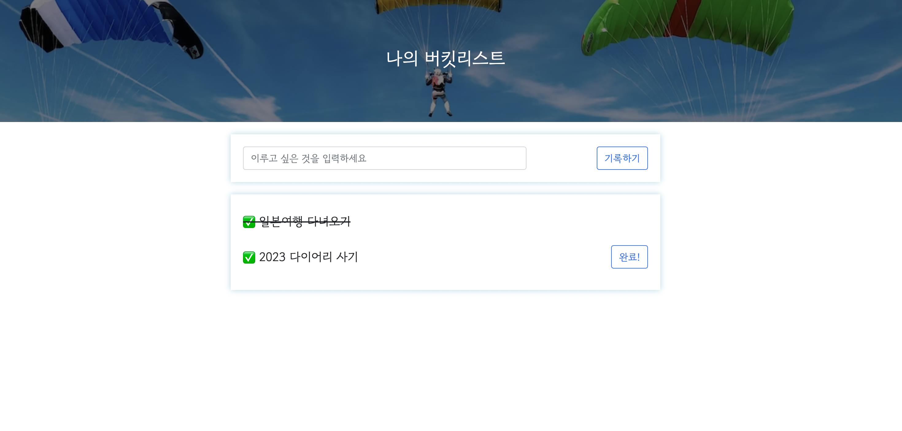 이루고 싶은것을 기록하여 POST하고, 바로 웹페이지 새로고침을 통해 DB에서 GET하여 버킷리스트를 가져와서 보여준다.