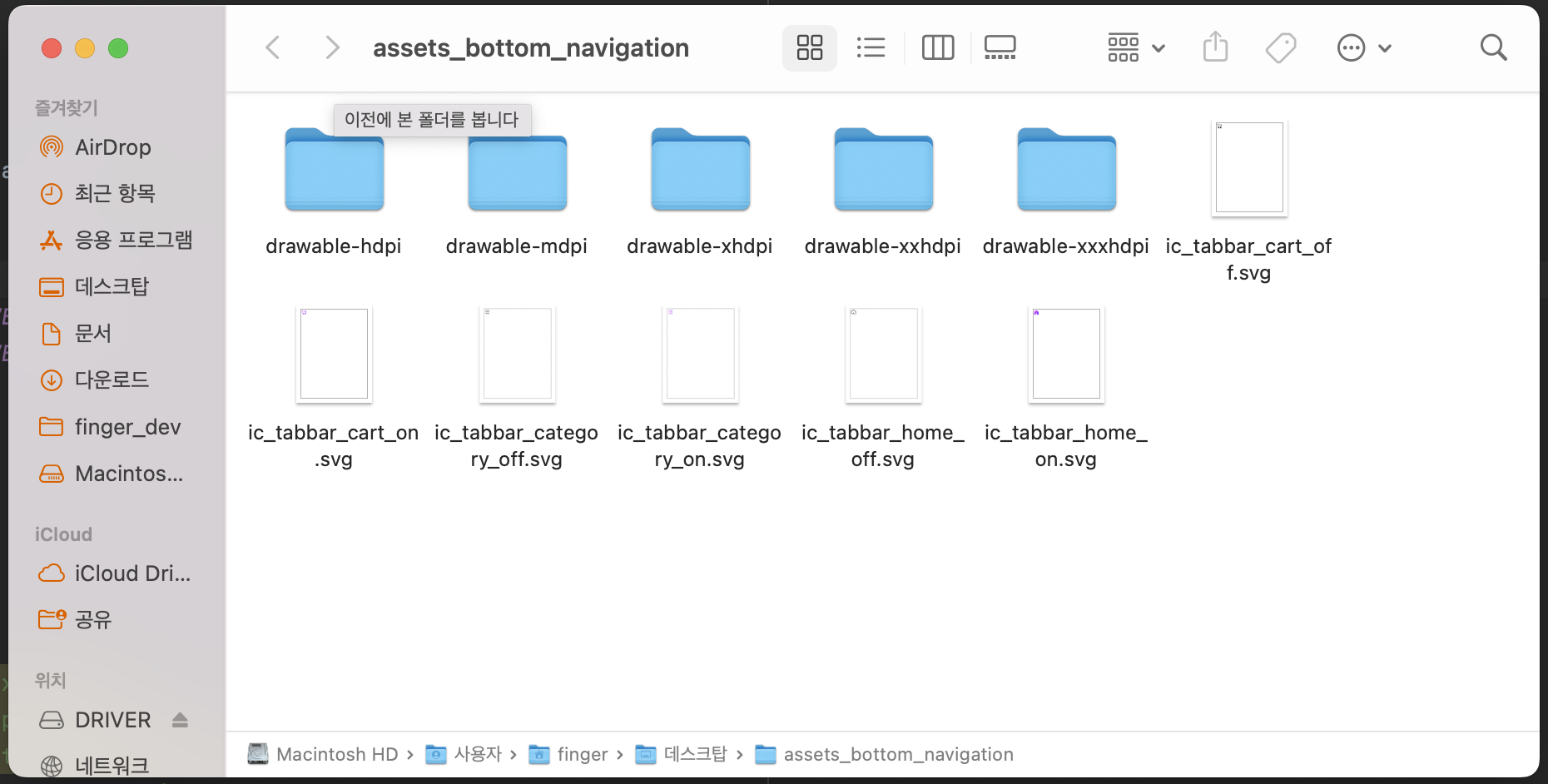 이런식으로 필요한 아이콘 갯수만큼 파일생성이 필요합니다. 저희는 bottom navigation var카테고리가 3개이기 때문에