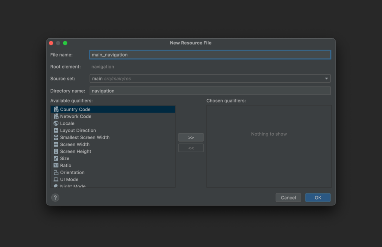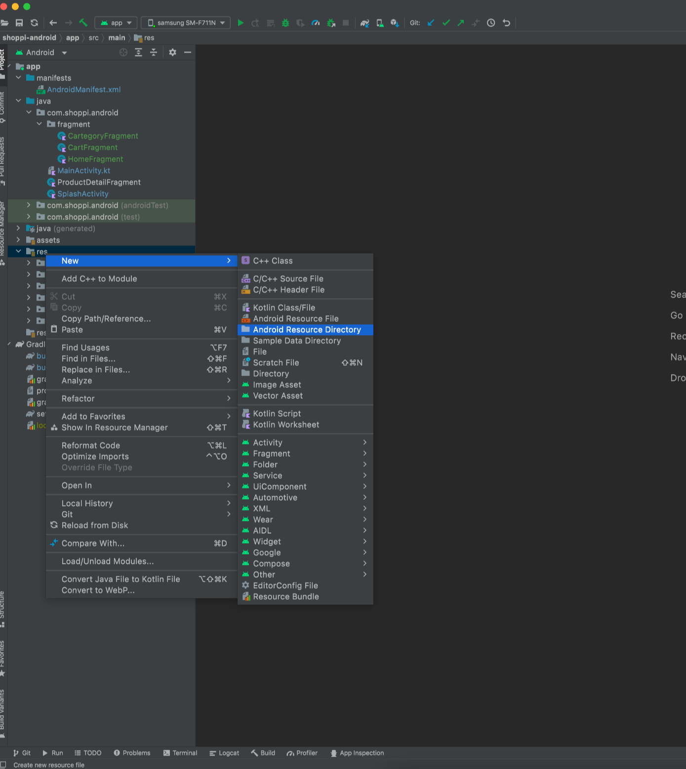 : navigation 폴더를 만들어야 navigation.xml 도 만들 수 있습니다. navigation.xml은 프래그먼트 간의 이동을 설정해줄 수 있는