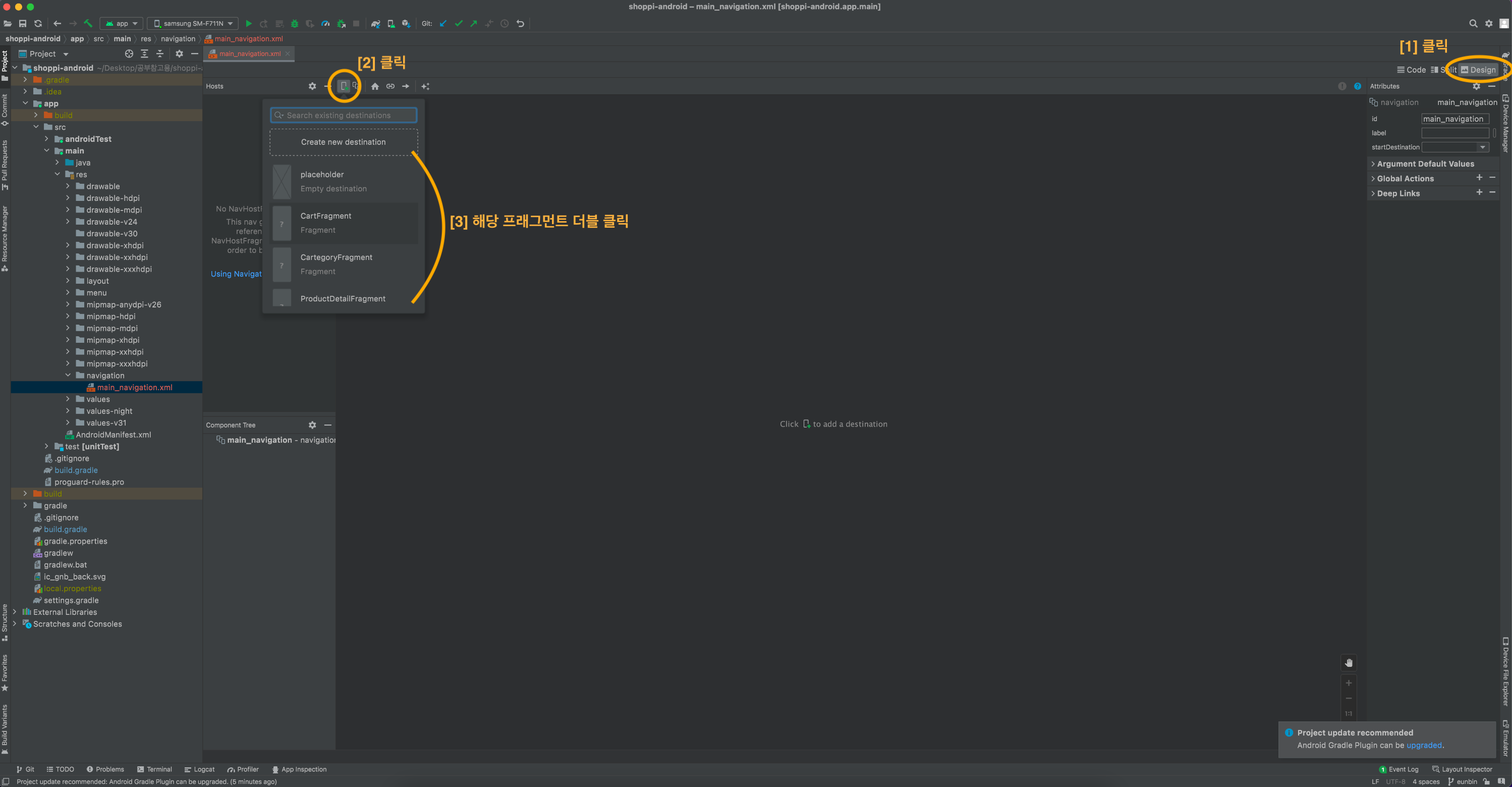 - navigation 폴더와 navigation.xml 파일 생성 및 코드 구현